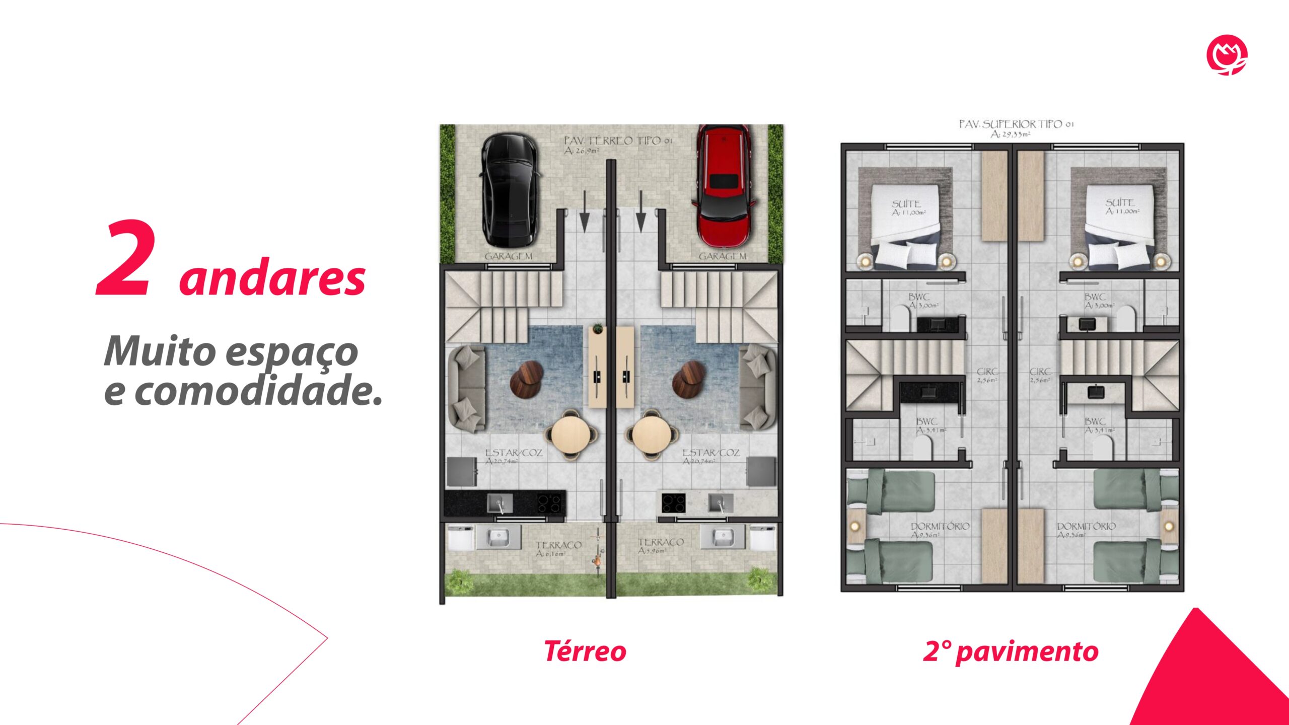 * 🛏️ 2 dormitórios, sendo 1 suíte