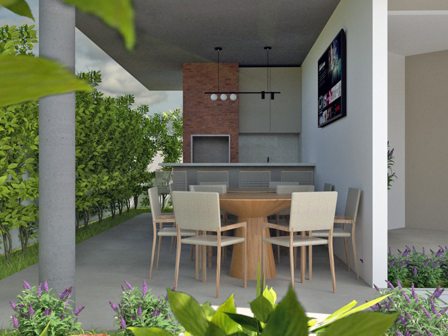 Salão de festas com churrasqueira
