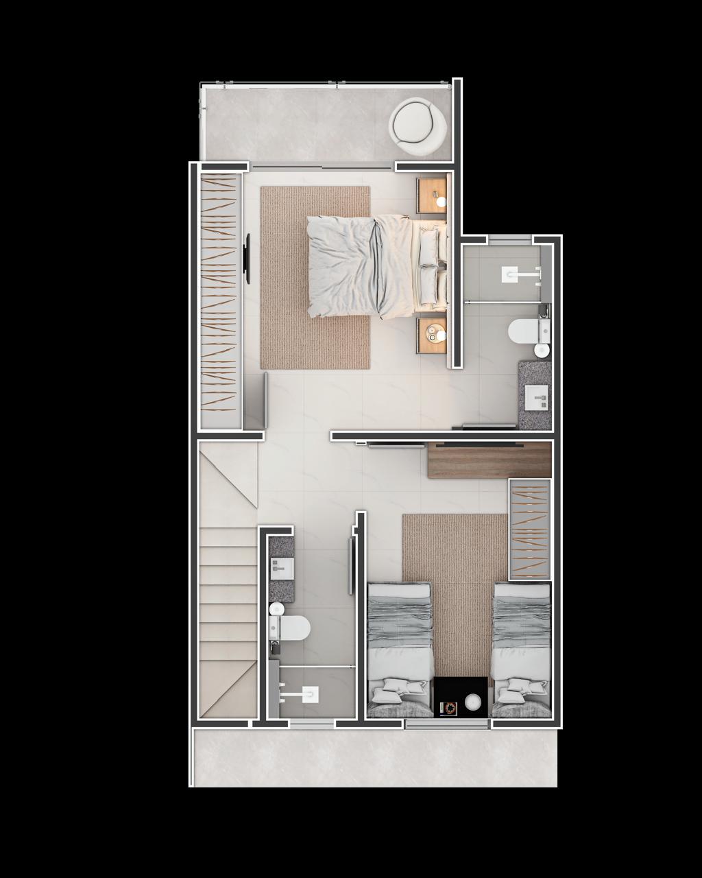 Dormitórios com persianas integradas